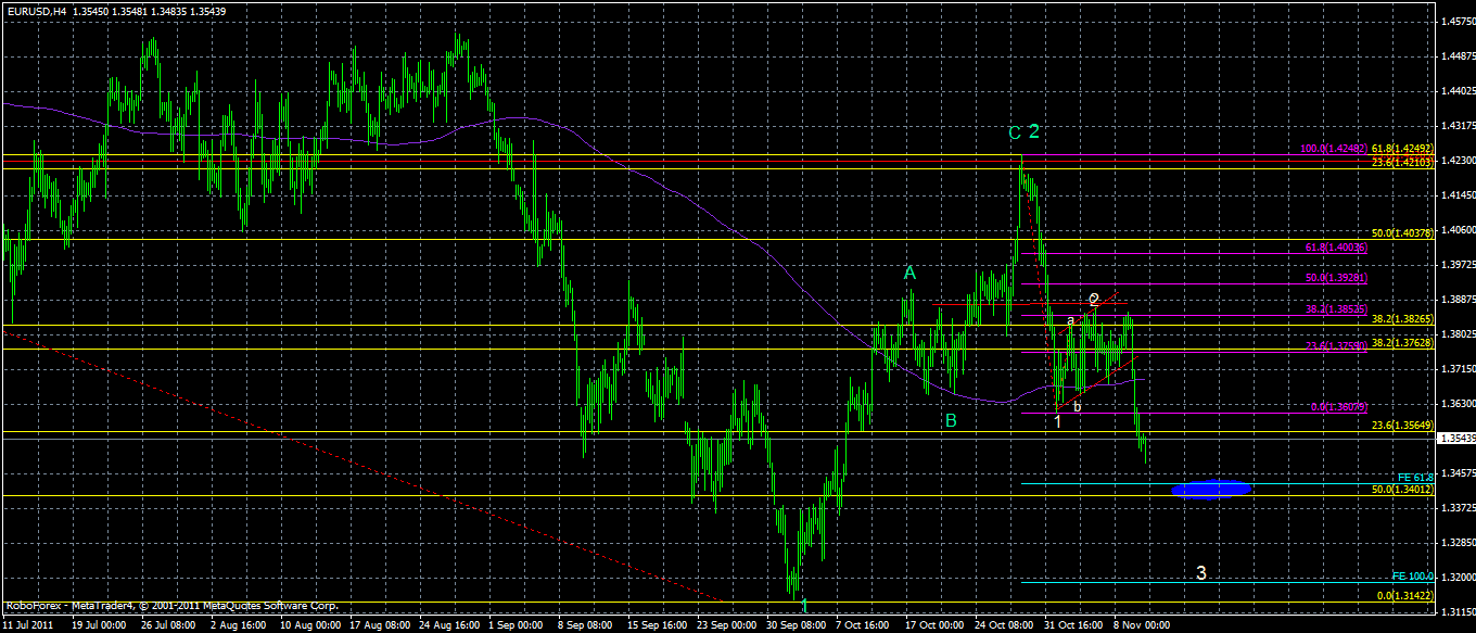 Предполагая сегодня формирование разворотного медвежьего сигнала, что дает основания к предпочтительности планирования продаж на сегодняшний день. Поэтому, в настоящее время, допускаю вероятность возврата курса к ближайшим уровням сопротивлений 1,3760/80, где и рекомендуется оценить развитие активности сторон. Для краткосрочных продаж, при условии формирования разворотных сигналов целями будут 1,3700/20, 1,3660/80 и далее до 1,3600/20. Альтернатива для покупателей будет находиться выше 1,3860 с целями 1,3900/20, 1,3960/80. Пока все идет по сценарию от уровня 1,3778 развернулись вниз, достигли первого уровня 1,3700/20 идем к 1,3660/80, где возможно и некоторая коррекция до 1,3740/60, а дальше пока еще не ясно, или опять вниз к 1,3600 или разворот вверх. Пока наблюдаю. Редактировалось: 1 раз (Последний: 14 ноября 2011 в 11:41) | ||||