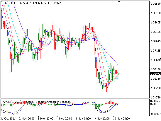 EURUSD на 11 ноября: вчера пара продемонстрировала сильную динамику, поднявшись до уровня 1.3650. Сейчас направление тренда не ясно, если будет пробит уровень 1.3600, возможно цена начнет двигаться к уровню 1.386. Прикрепленные файлы: