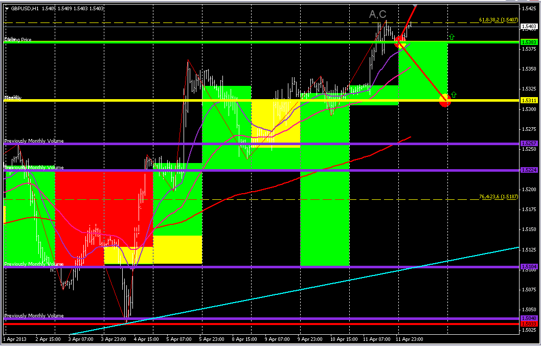 По паре фунт доллар уровень сопротивления 1.5408 на часовом графике уровень поддержки 1.5342 В пятницу пара не плохо снизилась к уровню поддержки.У меня появился сигнал на продажу.В понедельник по паре предполагаю дальнейшее движение о точке входа в продажу отпишу в понедельник.Если пробъем уровень поддержки то думаю пара снизится к 1.5031 |