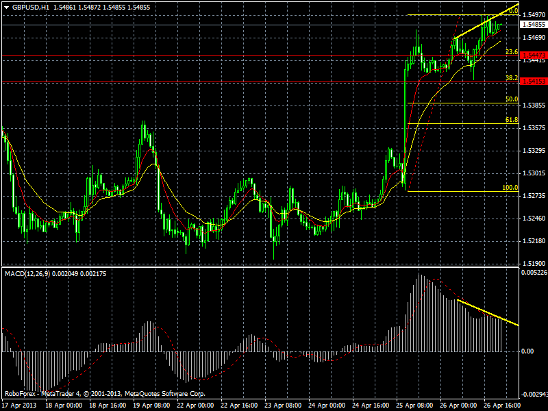 По паре ожидаю коррекцию к начавшемуся росту как минимум к 1,5447, что соответствует уровню 23,6% по Фибоначчи, как максимум к 1,5415, что соответствует уровню 38,2% по Фибоначчи. В дальнейшем ожидаю продолжение восходящего движения. Дополнительным сигналом может служить появишаяся дивергенция на часовом графике валютной пары. Прикрепленные файлы: