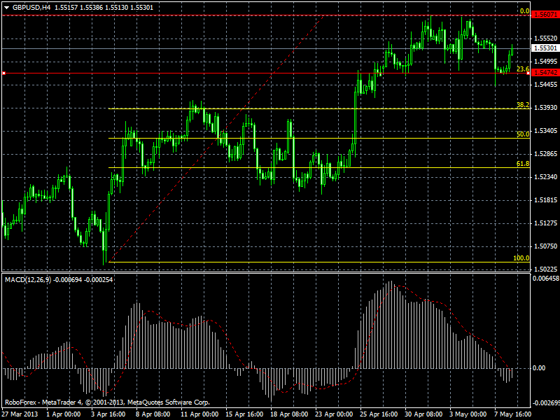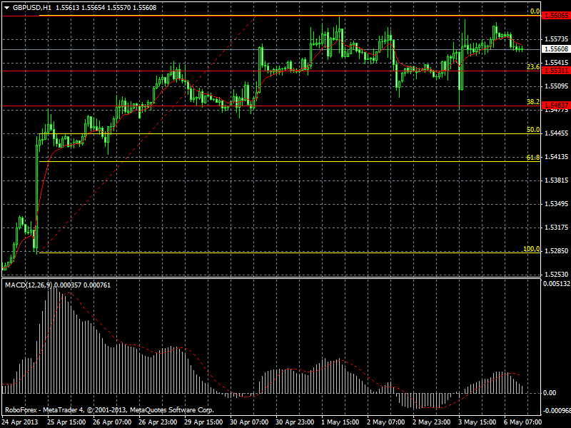 Валютная пара зафлетила между уровнем 0% и уровнем 23,6% по Фибоначчи. В данный момент в рынок входить нежелательно, однако по достижению уровня 1,5607 можно рассматривать продажи с целью 1,5472, что соответствует уровню 23,6% по Фибоначчи, и с целью 1,5393, что соответствует уровню 38,2% по Фибоначчи. Прикрепленные файлы: