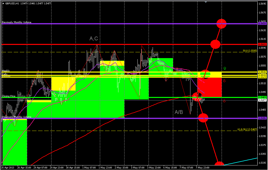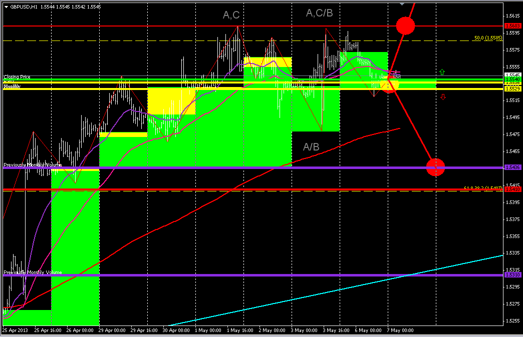 В связи с сегодняшним стремительным ростом по паре в рамках восходящего тренда пересмотрел перспективы для пары,думаю движение на север еще продолжится на одну фигуру к уровню 1,5650 откуда пара либо после консолидации либо сразу отправится в южном направлении в среднесрочную перспективу,возможно фундамент по Великобритании окажется не такой негативный как указанно в календаре. ![]() Редактировалось: 1 раз (Последний: 8 мая 2013 в 21:20) Торгую у брокера FXOpen | ||||