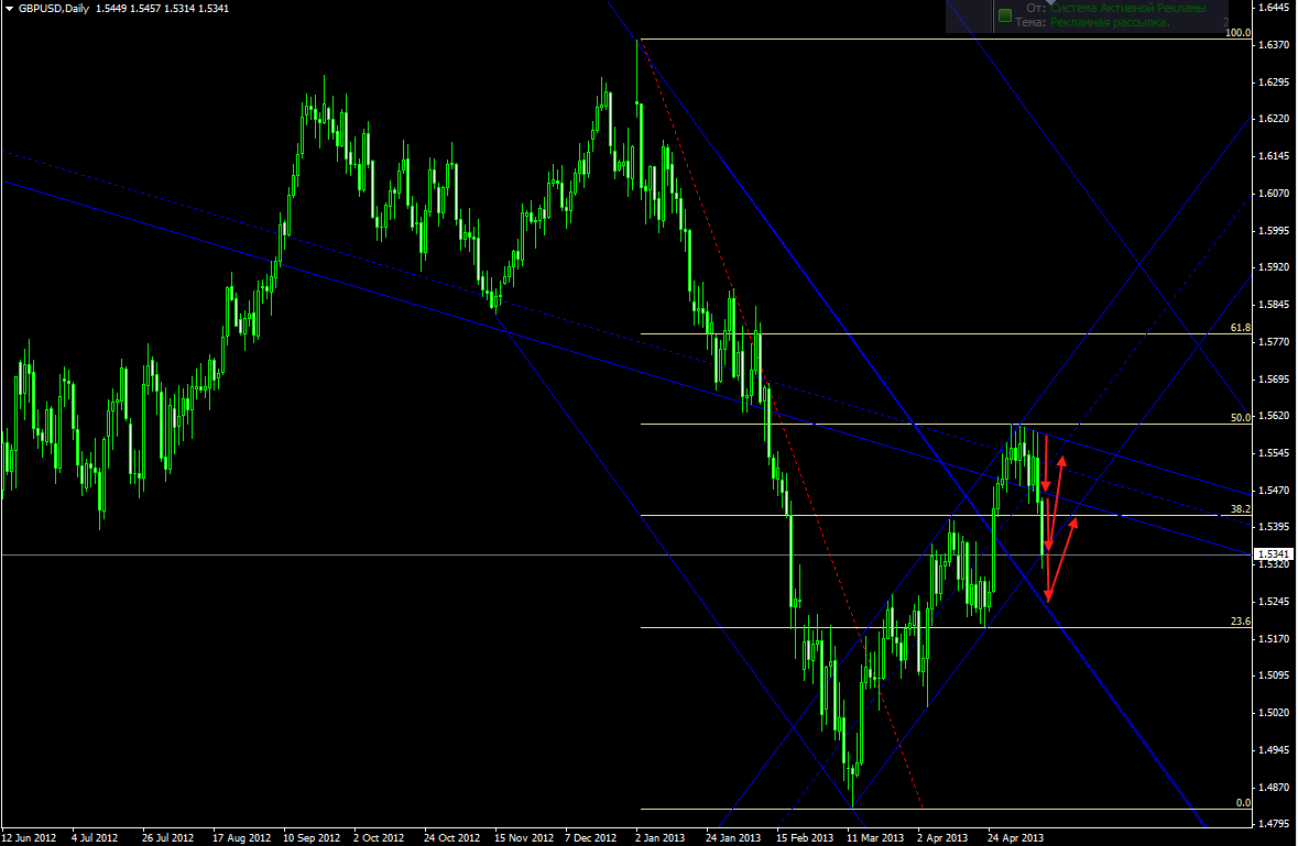 Пара отлично отработала свою цель при пробое понижающегося канала на часовике на уровне ориентировочно 1,5355. Здесь же находится нижняя граница восходящего канала на Н4. В данной ситуации возможен отбой вверх к серединке Н4-канала с целью 1,5520-1,5540 или дальнейшее движение вниз для ретеста верхней граница понижающегося канала на D1 на уровне 23% фибо низходящего тренда на D1 (1,5195-1,5210). Если исполнится эта цель буду входить в длинную с целью 38% фибо (1,5420). Прикрепленные файлы: