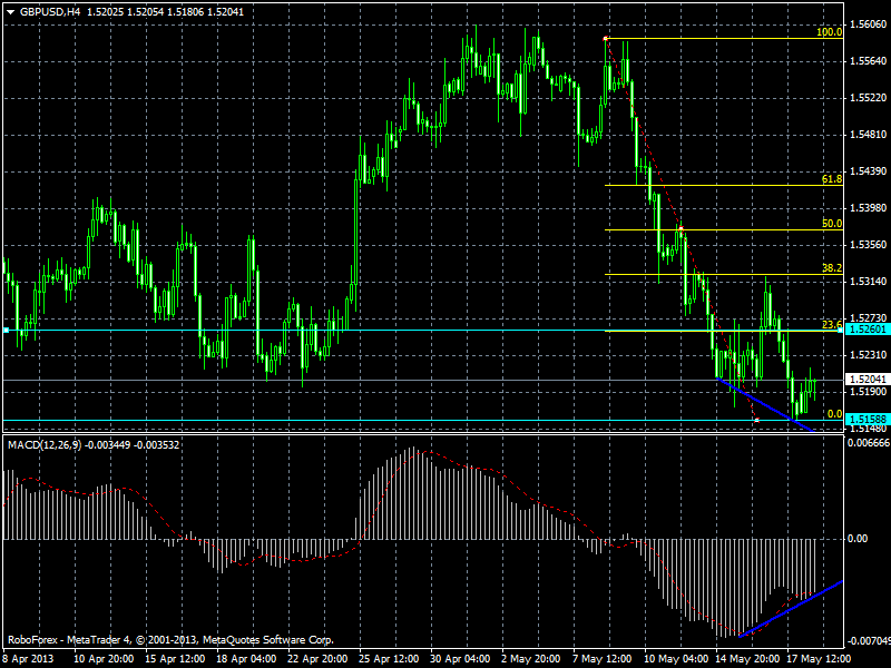 По валютной паре фунт/доллар идет отработка сигнала дивергенции на 4-хчасовом графике. Поэтому ожидаю рост пары вплоть до уровня 1,5260, что также соответствует уровню 23,6% по Фибоначчи. В дальнейшем ожидаю продолжение падения котировок. Прикрепленные файлы: