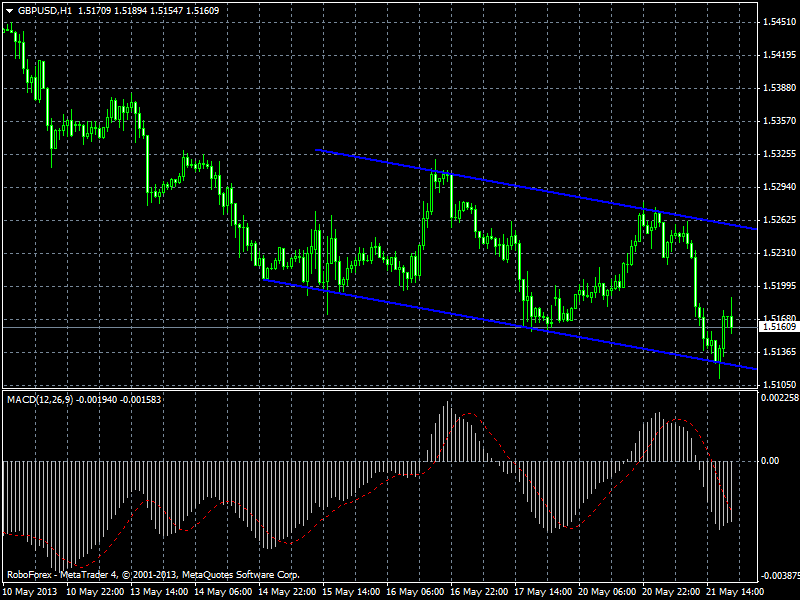 Валютная пара фунт/доллар находится в нисходящем канале на часовом графике, цена недавно оттолкнулась от линии поддержки канала. Прогнозирую рост котировок до линии сопротивления канала на уровне 1,5248. Гистограмма MACD находится в отрицательной зоне и уменьшается и вот-вот сформирует сигнал на покупку. Прикрепленные файлы: