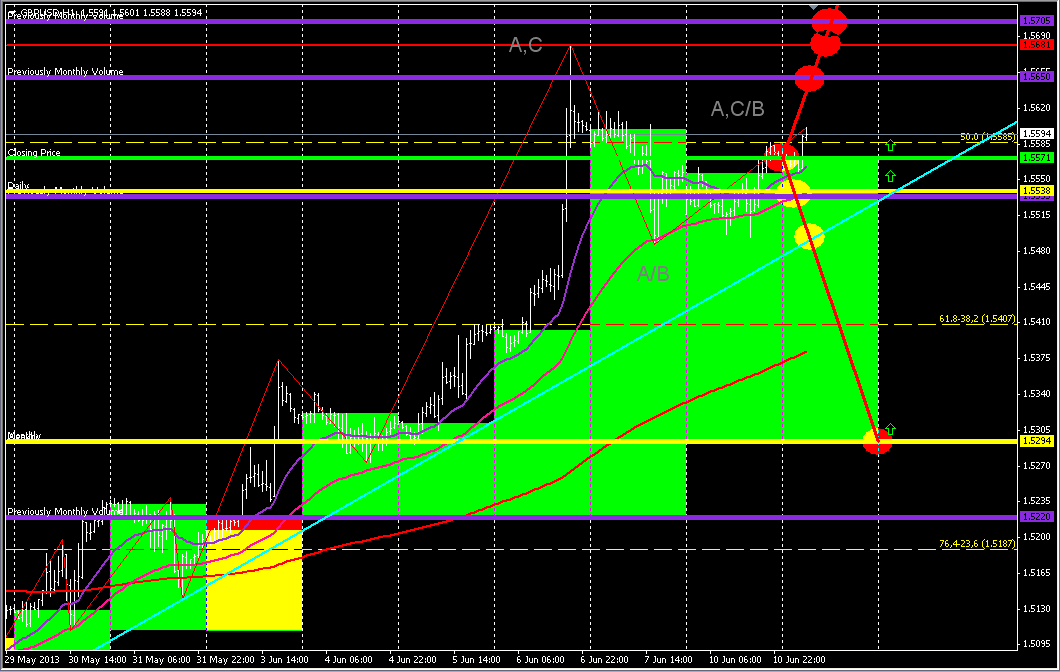 В данный момент пара торгуется в торговом диапазоне 1,5680-1,5530, покупки с коротким профитом при пробое уровня 0 фибо(1,5680), продажа при отскоке с ближними целями 1,56