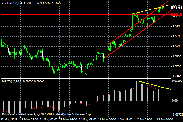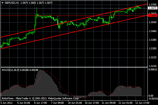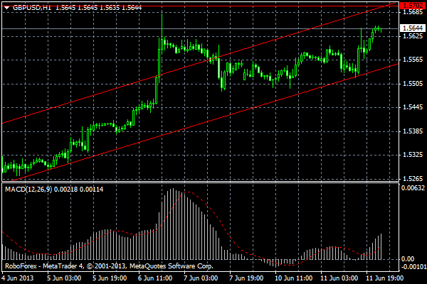 Здравствуйте уважаемые коллеги. На текущий момент на четырёхчасовом графике пара GBRUSD тестирует нижнюю линию восходящего канала, можно открыть длинную позицию с целью роста цены к уровню 1.5683. Индикатор МАКД находится в положительной зоне и подтверждает сигнал на покупку. Успехов в торговле. ![]() | ||||||