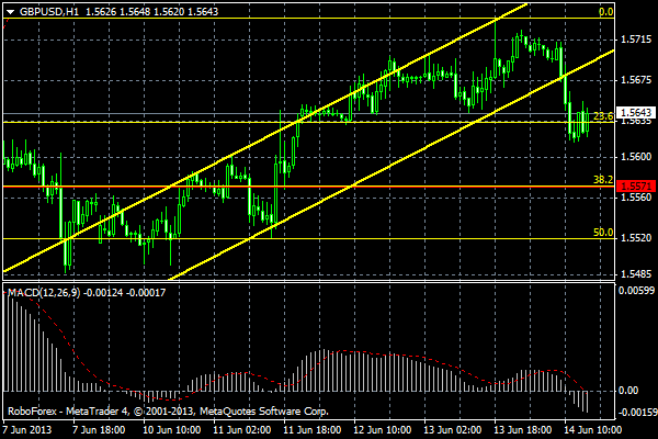Валютная пара GBP/USD пробила линию поддержки восходящего канала часового графика. На ретесте пробитой линии планирую продавать пару с целью 1,5571, что также соответствует уровню 38,2% по Фибоначчи. Прикрепленные файлы: