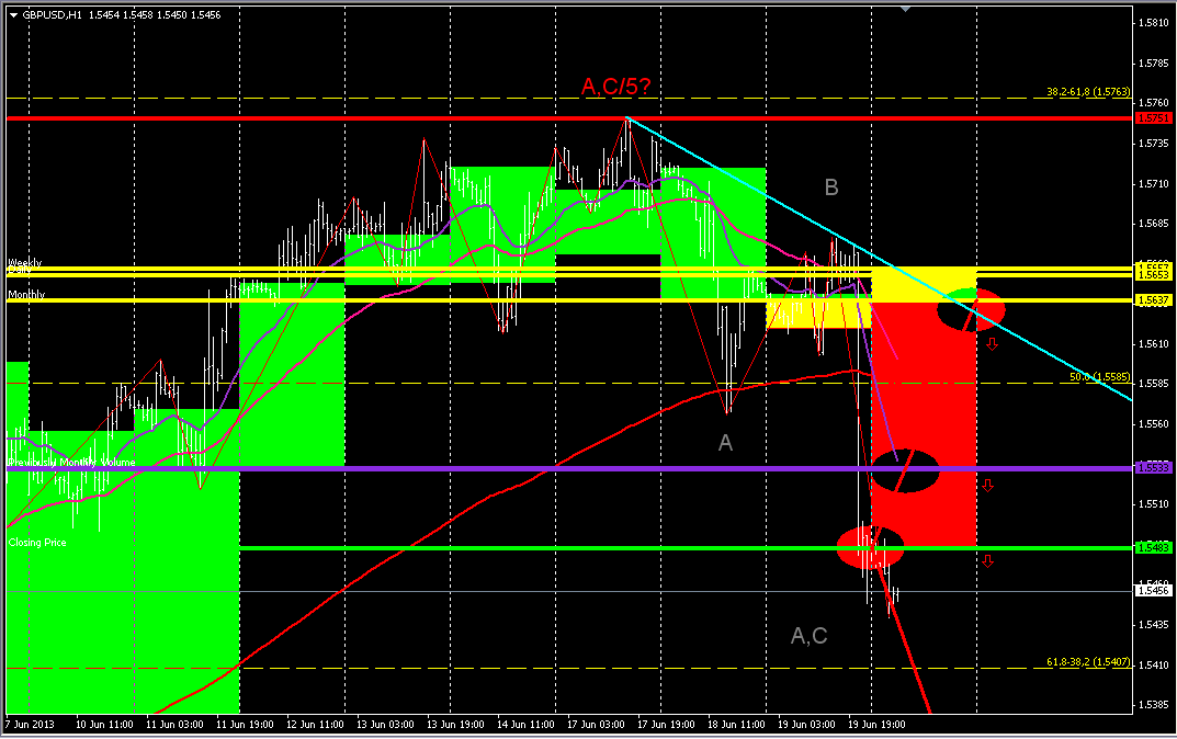 На 4 часовом графике четко виден отбой от зеленой скользящей аллигатора (район 5500 фигуры), стохастик опять образовал сигнал на продажу, сигналом на вход в короткую позицию должен выступить прорыв нижнего фрактала 5467, цель на сегодня- 5400 фигура. ![]() | ||||