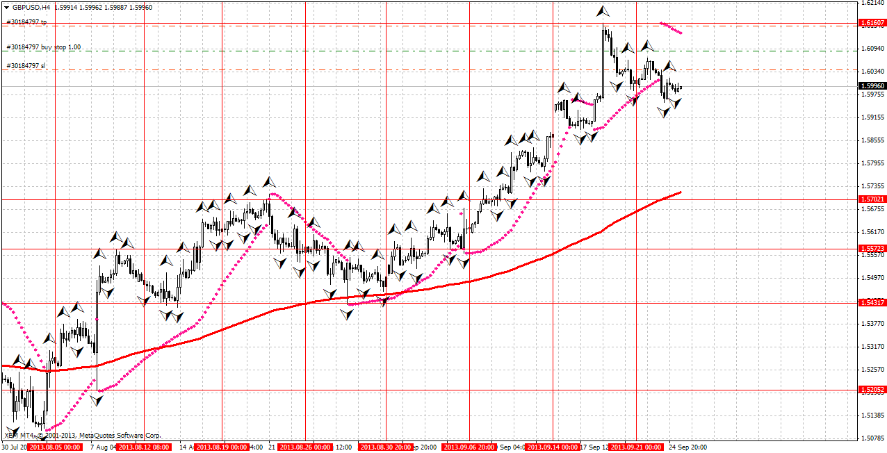 Пара вначале торгового дня торговалась с понижением ,однако после достижения отметки 1,5955 развернулась на север, и сейчас ей удалось пробиться выше сопротивления 1,60. Однако параболик уже указывает на снижение , хотя 200-я ема еще находится ниже цены.
