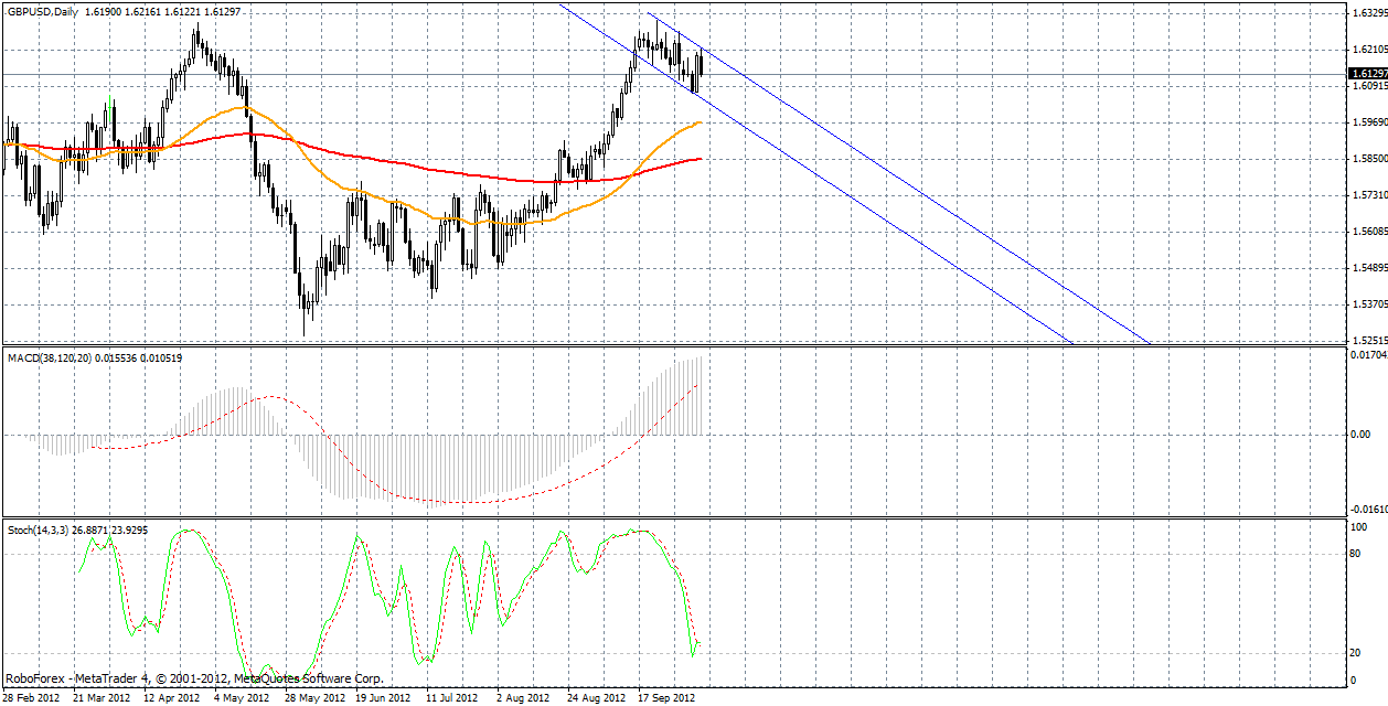 Пока 1.6200 выступает сопротивлением и не пробит наклонный канал,возможно формирование третьей волны вниз.