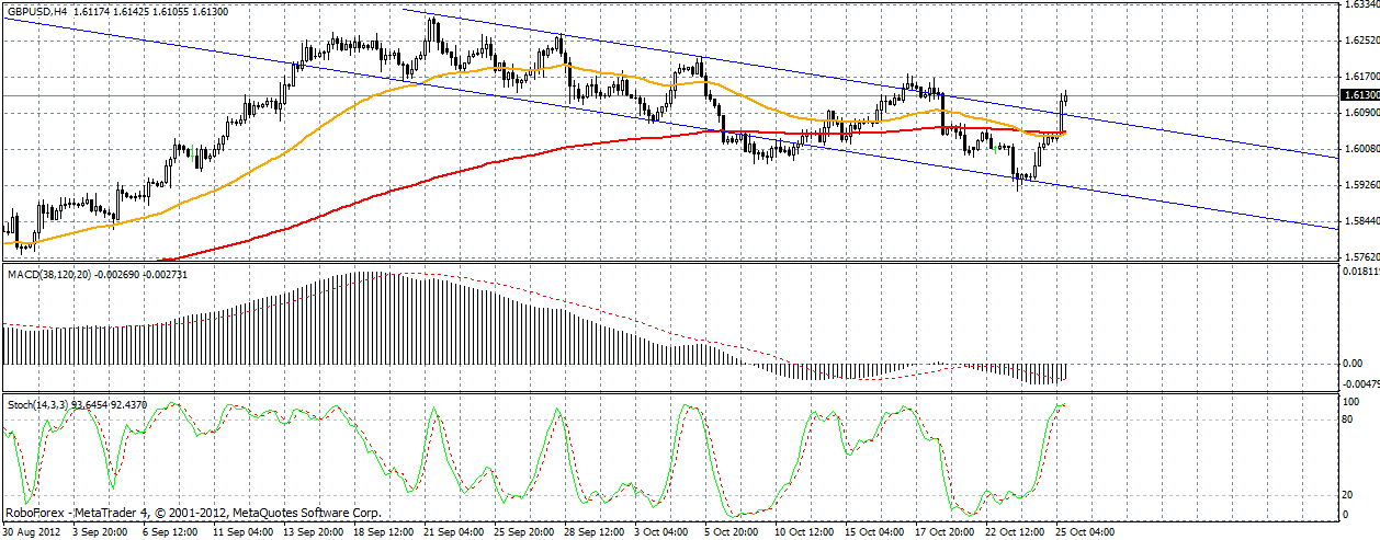 Фунт уперся в трендовое сопротивление 1.6133 и уже несколько часов ходит возле него с небольшим снижением. Сейчас возможен откат с целью 1.6027 (по фибо50), а далее думаюю будет штурмовать 62-ю фигуру. Продажи если и рассматривать сейчас, то с осторожностью. Основное направление - север. | ||||