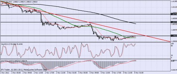 ![]() Пара продолжает движение в нисходящем канале. Мы прокололи уровень 1.5959 и вернулись, предполагаю движение к верней стенки канала на уровень 1.6010-1.6015. И потом продолжения снижения к уровню 1.5920. | ||
