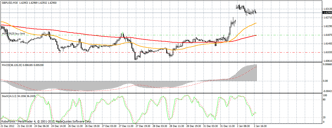 Анализ ТС Если произойдет коррекционное движение и цена опустится в район отм.1.61870,где пролегает тяжелая скользящая средняя,то будем открывать лонг со стопом в 50 пунктов | ||||