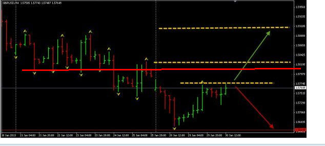 GBP/USD:пока уровень 1.5735 и граница наклонного канала выступают ключевой поддержкой,возможно продолжение роста.