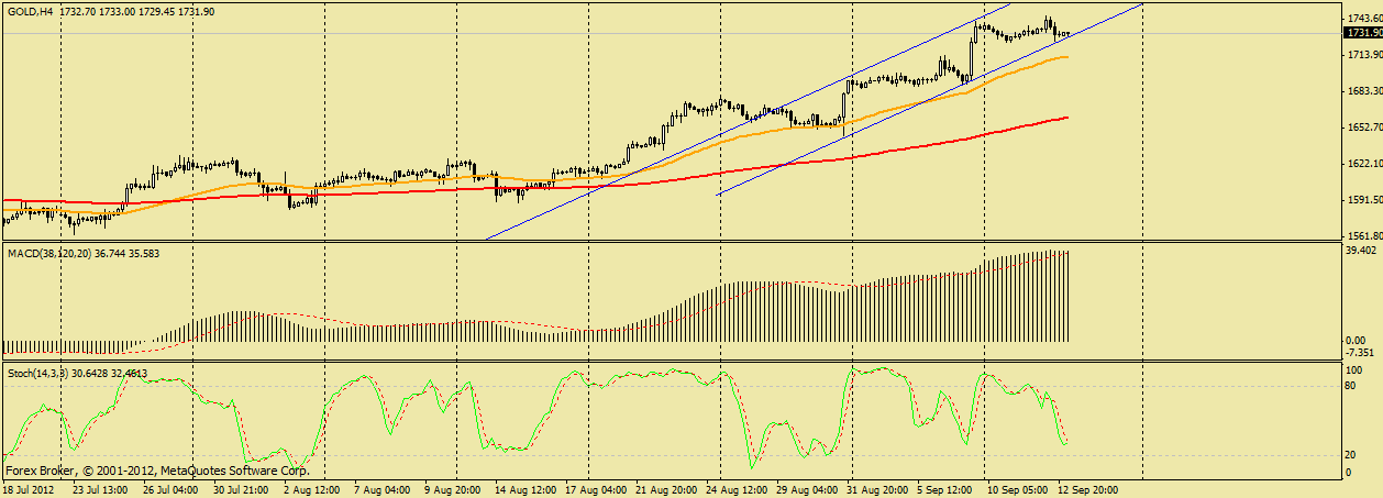 Золото только что сильно рвануло на север (после выхода новостей), цена прорвала сильный уровень 1700, пока немного приостановилось движения, думаю будет начало южной коррекции, держу короткую позицию , стохастик- сигнал на продажу. ![]() | ||||||||