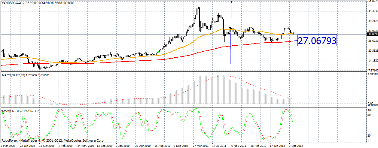 Очень похоже,что серебро нацелилась на 27 фигуру(тф Д,W) в среднесрочной перспективе. В начале недели ожидаю отскок в район отм.31.90 ,где буду открывать шорт. |
