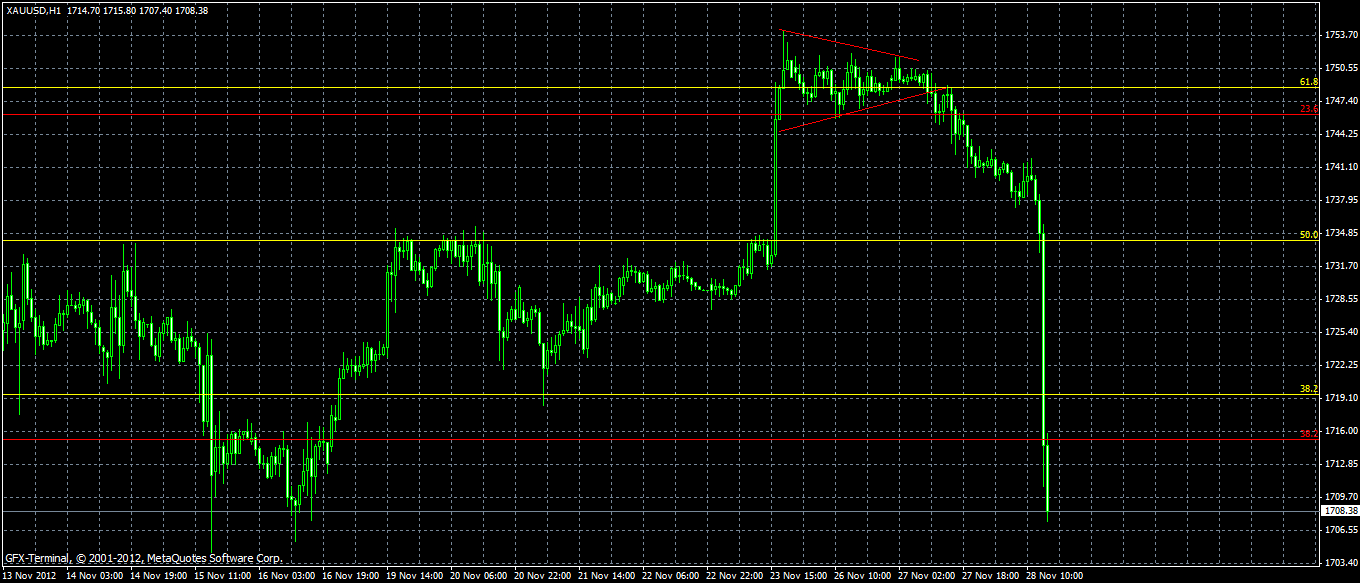 Спот-цены на золото упали почти до двухнедельного минимума, пробив поддержку 1720 долларов за унцию и сейчас торгуется на 1712 за унцию.Что стало причиной остается гадать хорошо стоял в short :),который прикрыл от греха подальше Единственный способ поумнеть это играть с более умным противником. |