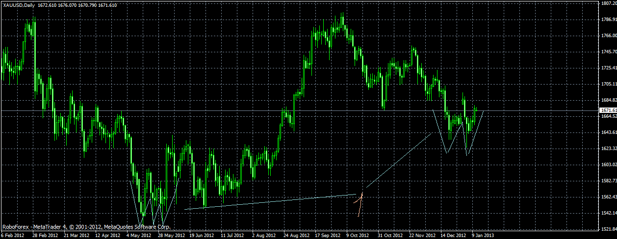 Платина отлично отработала сигнал на покупку, сейчас цена пошла на южный отбой от наклонного уровня сопротивления но похоже цену покупатель опять подхватил около 1687 уровня ниже которого цену пока не пускают, скорей всего от него и будет возобновления северного роста , да и рынок металлов находится сегодня в сильном южном тренде, цель по прежнему - месячный максимум 1700,1727. ![]() | ||||||||