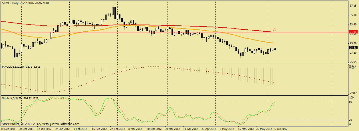Движение серебра может продлиться до сильного уровня сопротивления 200МА на ТФ Д1(отм. 31.95).Пятничный взлет серебра и золота ввел в недоумение т.к. на падающем рынке такой рост металлов казалось чем то аномальным.Теперь стало ясно,что металлы стали опережающим индикатором и предопределили рост евра на этой неделе. Прикрепленные файлы: