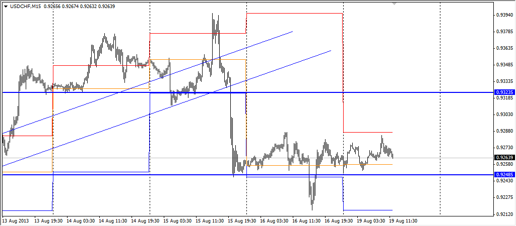 По паре доллар-швейцарец наблюдается небольшое снижение. Отложку на покупку мою так и не зацепило. Пара отскочила от облака Ишимоку на четырехчасовом тайме . Сильно не снизилась. Впринципе все в рамках предполагаемого прогноза. Сегодня не наблюдается волантильность по парам. Цена попрежнему внутри канала и флага торгуется. ![]() | ||||