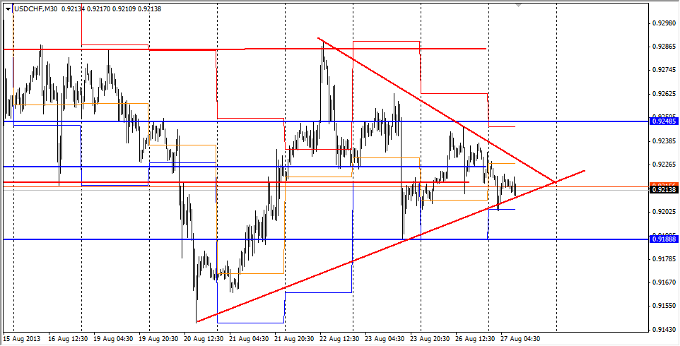 ![]() На мой взгляд данная пара находится в состоянии покоя и пока что не видно предпосылок для возникновения активного движения на рынке. Думаю, что флет окончится при пробое границы 0.9260 сверху либо же 0.9210 снизу. Рекомендую на этих уровнях ставить отложенные ордера с целями 0.9305 и 0.9155 соответственно. | ||||