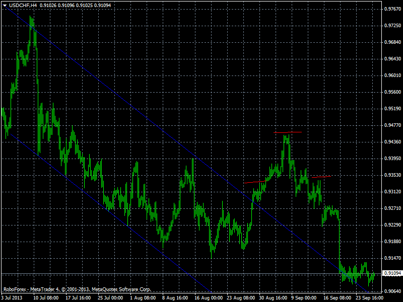 По паре USDCHF на часовом графике на данный момент подошли к стопу который указывал если упадем ниже 0,9060 то считаю падение продолжиться вплоть до уровня 0,9020-0,8980 откуда буду покупать снова,так как считаю разворот почти состоялся в виду треугольника,на данный момент падение спекулятивное выбивание покупателей.