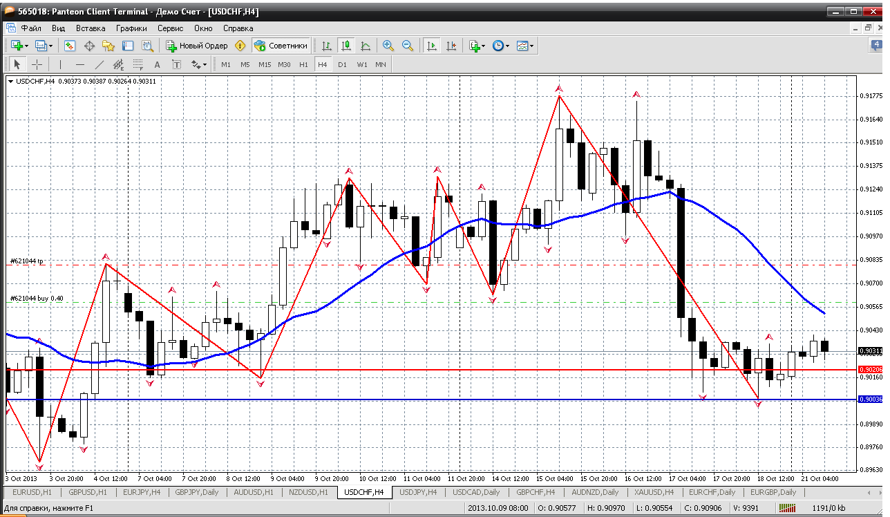 По паре USD/CHF цена остается курелесить там, где и была, пока что ничего не изменилось, даже сигналов ни каких возможных не вижу, разве что если все-таки цена просядет до уровня цены - 0,8966 и отскочит от того уровня, там же и стоит моя отложка на покупку, так что кроме нее стоит находиться вне рынка.