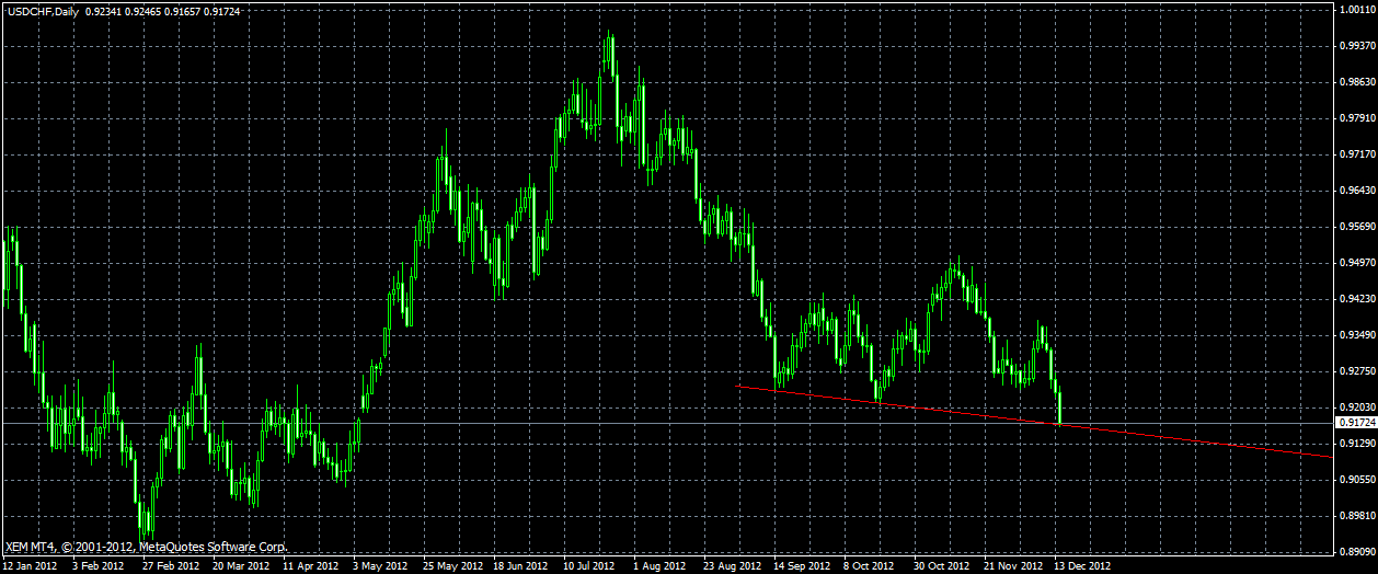 ====================== —USDCHF Analysis - December 17, 2012 —USDCHF breaks below 0.9214 support, suggesting that the downtrend from 0.9971 has resumed. —Further decline could be expected next week, and next target would be at 0.9000 area. —Resistance levels are at 0.9300 and 0.9400, as long as these levels hold, the downtrend from 0.9511 will continue. —For long term analysis, USDCHF had formed a cycle top at 0.9971 on weekly chart. —Further decline to 0.8500 area would likely be seen over the next several months.[Written by ForexCycle] ![]() Click to learn more! ~~~> h*ttp://goo.gl/FI6A0 ||BJF Trading Group||Expert Advisor||MT Indicator||Forex Software||MQL4 Coding|| Редактировалось: 2 раз (Последний: 17 декабря 2012 в 10:26) | ||||||||
