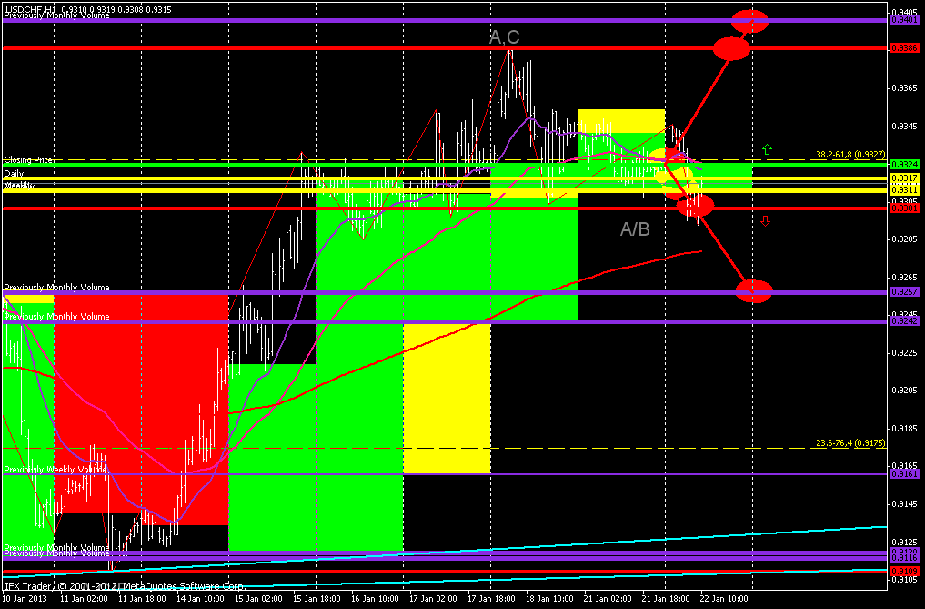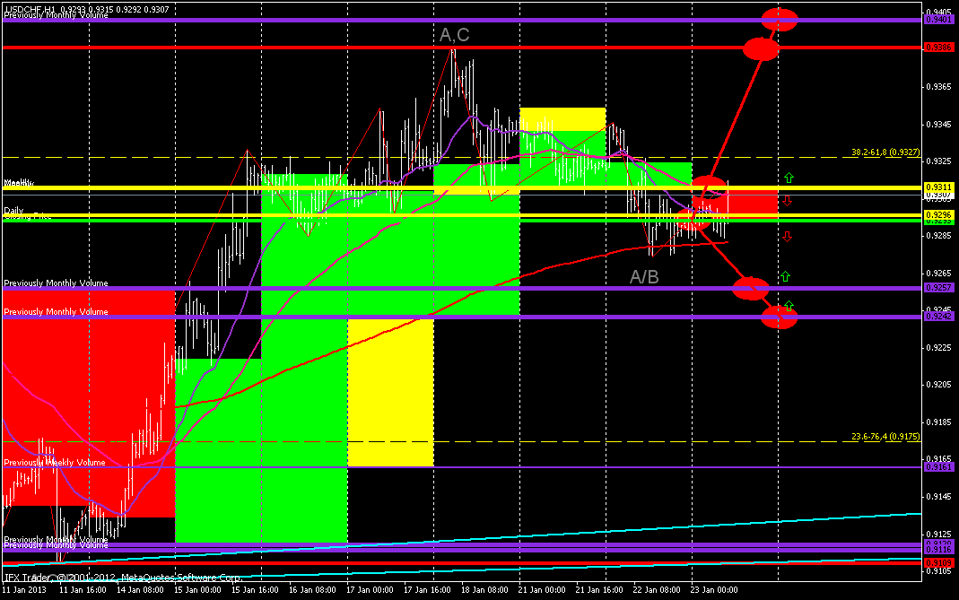 Продаем от уровней сопротивления (красные стрелки) – 0,9311 (Monthly and Weekly pivot, пробой). Цель снижения – 0,9257 (Previously Monthly Pivot). |