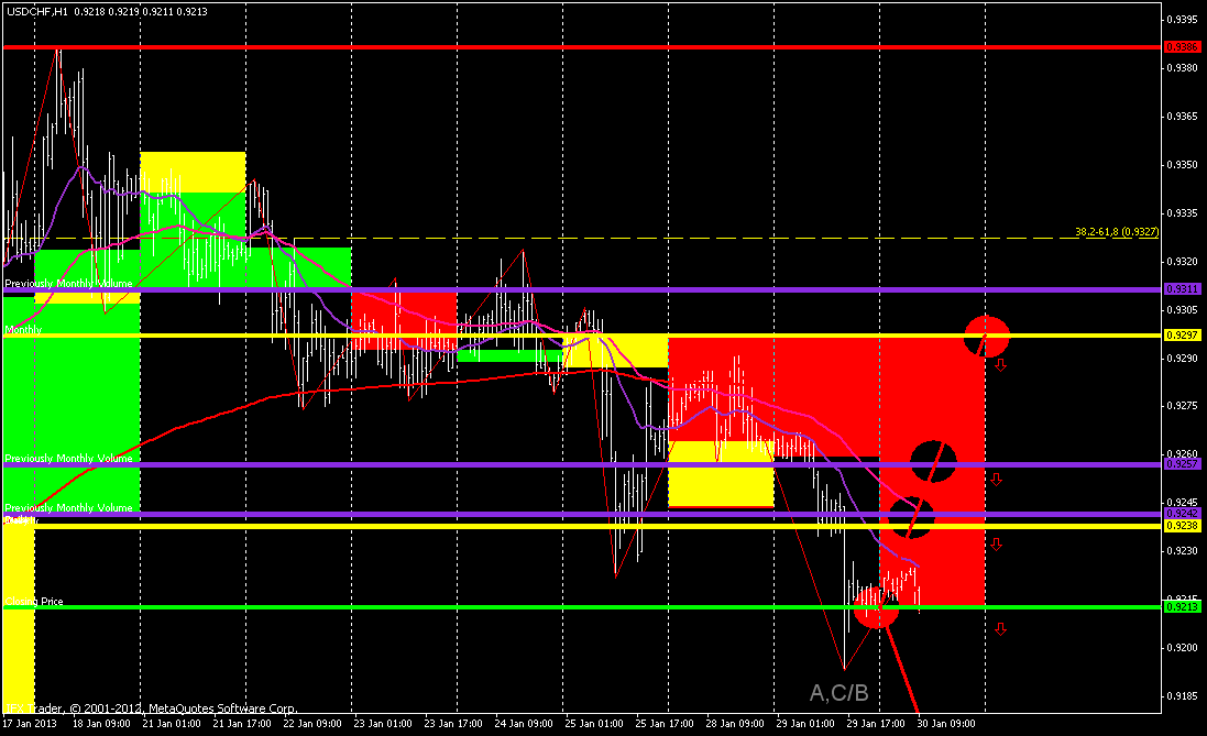 ![]() В прогнозе на среду в паре USD/CHF исходя из технического и свечного анализа, пара достигла предполагаемого уровня падения, и сейчас находиться на линии сопротивления тренда. Вероятность что пара пойдет ниже есть, а же склонен полагать что пара развернется на рост уже сегодня. И целевым уровнем будет 1,9230 со стопом 0,9125. Редактировалось: 1 раз (Последний: 30 января 2013 в 14:59) | ||||