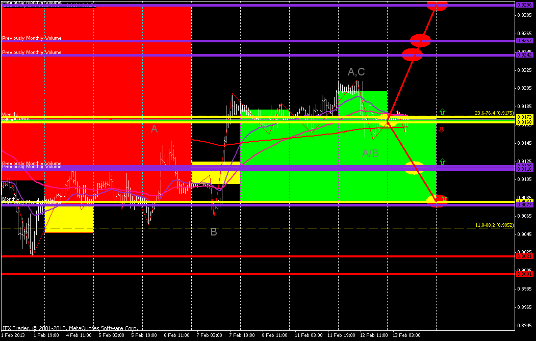 Хоть я планировал север сейчас есть опастность на часах пробить поддержку 0.9158. Внутри торгового коридорчика цена сформировала такую зигзагину (похожую на флаг). Так, что вполне можем сегодня увидеть и юг. ![]() | ||||