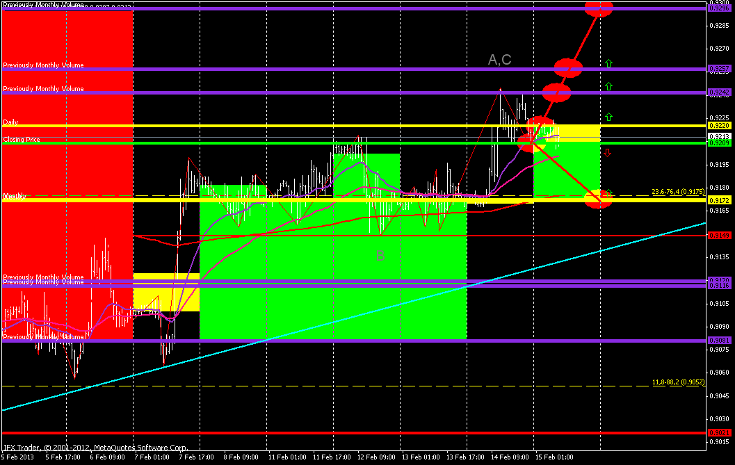 По франку пока что идет флэт над уровнем поддержки +/- 0,9210. Вот до тех пор пока цена находится выше данного уровня, я так думаю, что есть смысл ориентироваться и дальше на север. Вот если мишкам удастся нырнуть и закрепиться ниже данного уровня поддержки, тогда вероятно продолжение южного направления: ![]() | ||||