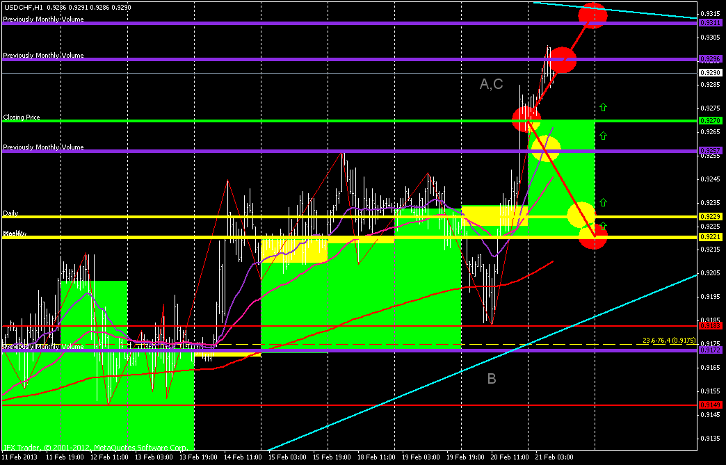 Доброго времени суток всем, товарищи трейдеры. Итак, доллар\франк, вчера показал слабость, а именно на дневном таймфрейме образовалась свеча с очень узким телом и на повышающимся объеме, так что это может говорит о возможном входе продавцов, поэтому сегодня ожидаю снижения к уровню 0.9202. ![]() | ||||