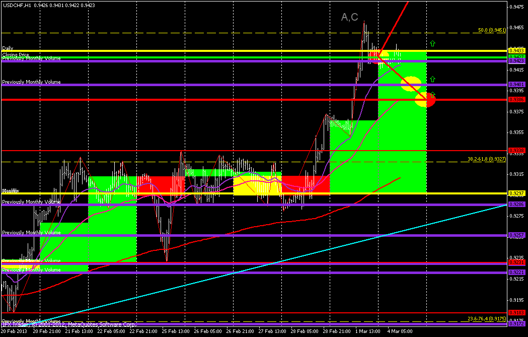Мой прогноз по валютно варе USD/CHF на вторник 5 марта таков,валютная пара доллар швейцарский франк обновила свои максимумы. Такое движение предполагает развитие пятой структуры в этой волне роста. На завтра рассматриваю нисходящее движение к ценовым уровням 0.9405; 0.9358 и далее ожидаю ещё одно обновление вершины с перекрытием 0.9462 ![]() | ||||