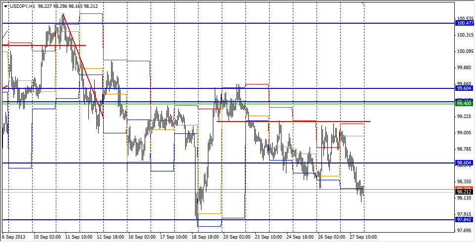 По паре USDJPY на часовом графике считаю что будет отработка фигуры W, поэтому ожидаю снижения к уровню 98,00 - 97,80 откуда буду покупать здесь может не доход до правого снижения или наоборот обновления низа,от этого будет зависеть рост и завершения фигуры,стоп можно поставить на уровень 99,00