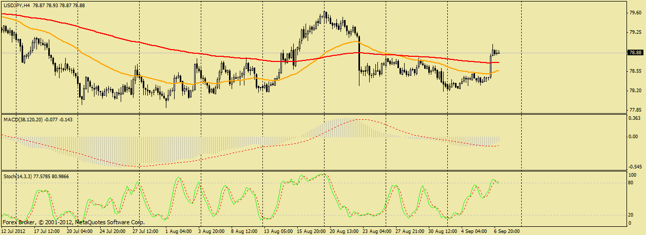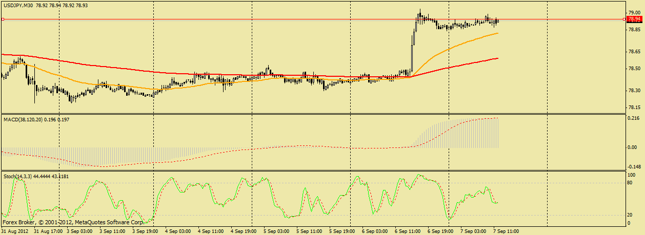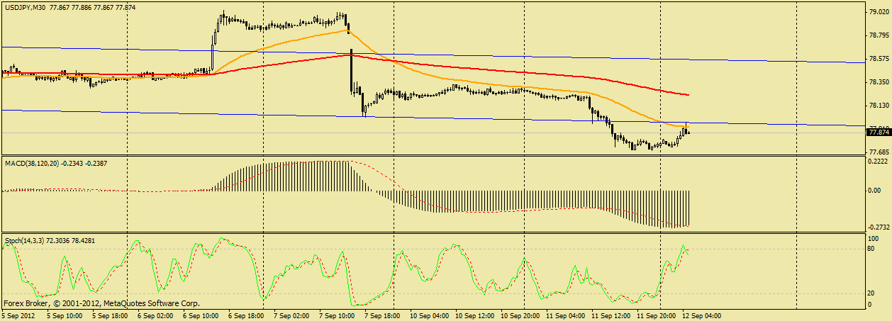 JPY как всегда в своем репертуаре, сегодня продемонстрировала сильный обвал, курс коснулся уровня поддержки 78.20 и от него пошел на северную коррекцию, которая думаю продлится к 78.50 (200 скользящая средняя). ![]() | ||||