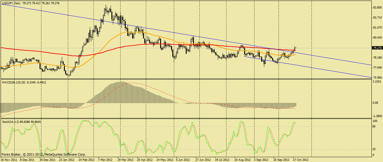 Я думаю основной целью у быков будет уровень 80.00 , подхода к нему я и жду с целью продаж поскольку от него можно пробовать ловить коррекцию, пара сегодня прорвала два уровня 200 скользящею и сопротивления 79.60 (и неплохо как для jpy выросла) . |
