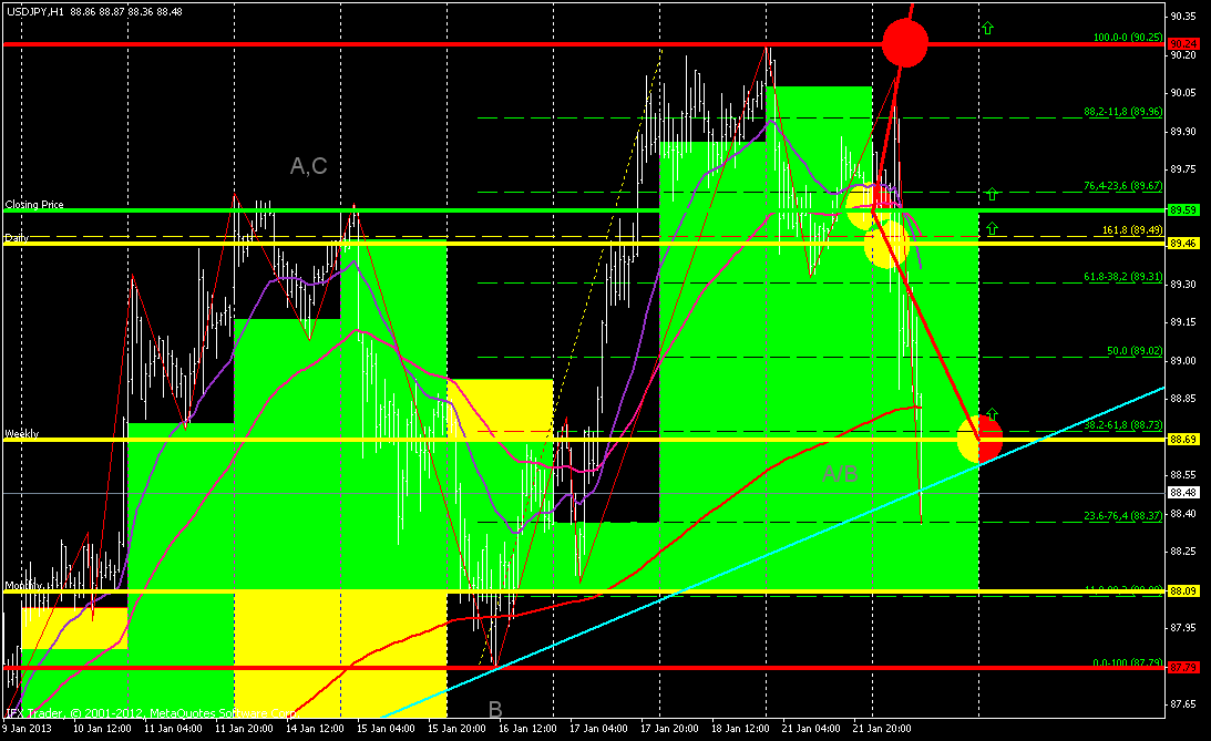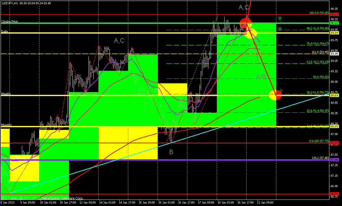 В прогнозе на следующую неделю с 21.01-25.01 в паре USD/JPY исходя из технического анализа, в неделе продолжиться рост продолжится до уровня 91.00, после чего из-за значительной перекупленности пары, начнется коррекция до уровня 87,50 где проходит 23,6 линия Фибоначчи. Возможна и более сильная коррекция до уровня 85.4 где проходит 38,2 линия Фибоначчи. | ||||
