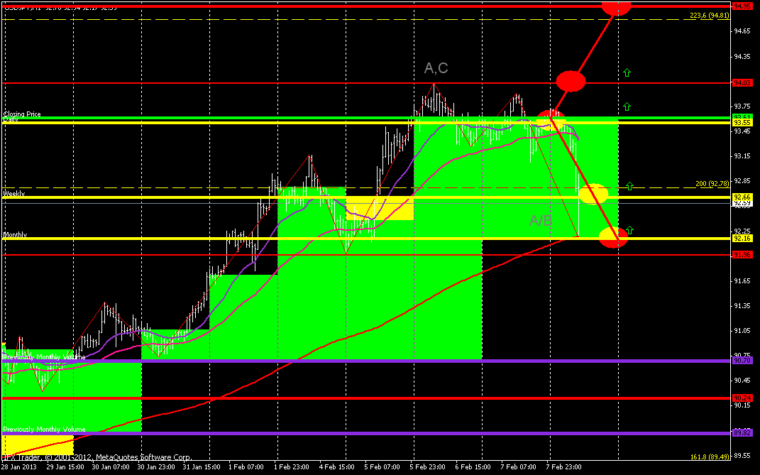 По JPY сейчас стоить играть на продолжения южного снижения, пара сумела прорвать ряд очень сильных уровней поддержки, среди них и нижняя граница восходящего канала, ближайший сильный уровень поддержки находится около 92.00 фигуры (возле него также проходит и 200 скользящая) думаю основные силы быков сосредоточены там - о имеет достаточно сил чтоб повлиять на восстановления северного тренда, пока цель 92.00. ![]() | ||||