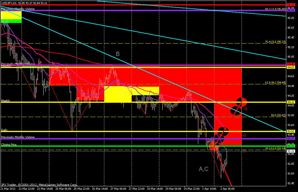 После того как jpy прорвала 93.90 (сильный уровень), с началом этой недели курс решил еще раз протестировать данную отметку но уже в качестве сопротивления, от него и собираюсь продавать поскольку укрепления ниже 94.00 фигуры да и общая тенденция по росту jpy должна вывести еще раз пару к 93.30, 93.00 как минимум. (стоп и возможный переворот на покупку выше 94.00). |