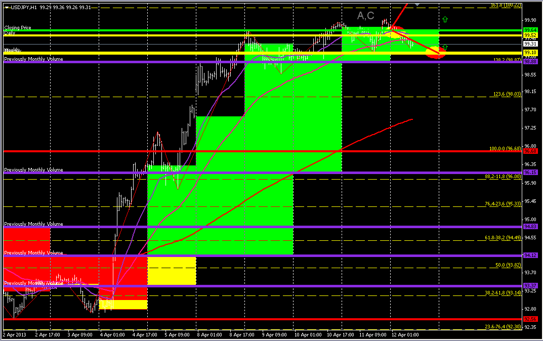 Вчера пара отбилась от дневного максимума от цены 99.87 и направилась вниз. Сегодня пара отбилась от дневного уровня от цены 99.13 + цена отбилась от 23% фибоначчи от промежуточного восходящего движения от цены 98.93. Если цена зафиксируется выше этих уровней можно возобновлять покупки с стопом ниже уровней и профитом максимум вчерашнего дня к цене 99.87. Если пара пробивает 23% фибоначчи на тестировании снизу можно пробовать продавать пару с стопом выше уровня с целями 38% фибоначии. ![]() | ||||