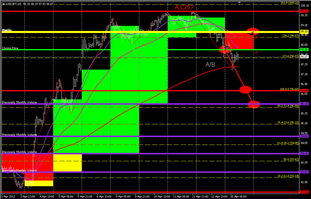 ![]() Можно заметить, что пара понемногу отходит от мощного рывка вверх и понемногу идет движение на понижение. В данный момент курс находится ближе к нижней границе канала, однако я обращаю основное внимание на волнообразное движение канала. Так что советую всем смотреть в продажи вплоть до уровня 97.60, но тем не менее не забывать ловить откаты в 30-40 пунктов. | ||||