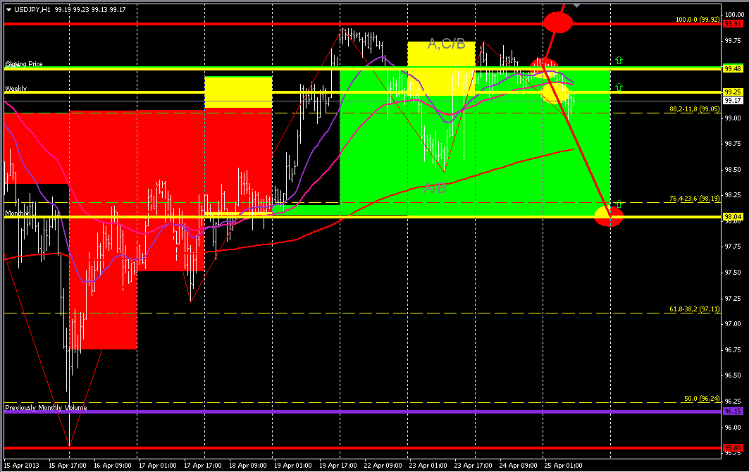 По паре USD/JPY цена находится в таком положении, что вполне можно ожидать какого то резкого движения, в любую сторону, в данном случае больше склоняюсь к движению вверх к давно желаемому рубежу 100.00, и далее к 101.00. | ||||