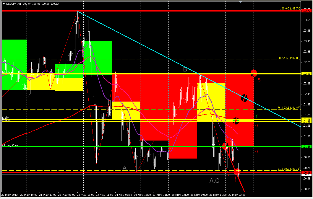 На данный момент по USD/JPY пара двигается в узком нисходящем коридоре, до конца недели (или месяца) думаю цена опуститься еще ниже, вплоть до уровня 100.00 или ниже. |