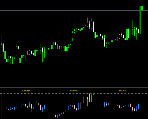 Индикатор Multy Symbols Chart v2. Индикатор рисует под основным графиком графики других валютных пар того же таймфрейма, что и на основном. Пары, а также цветовую гамму можно задать самостоятельно. Прикрепленные файлы:
