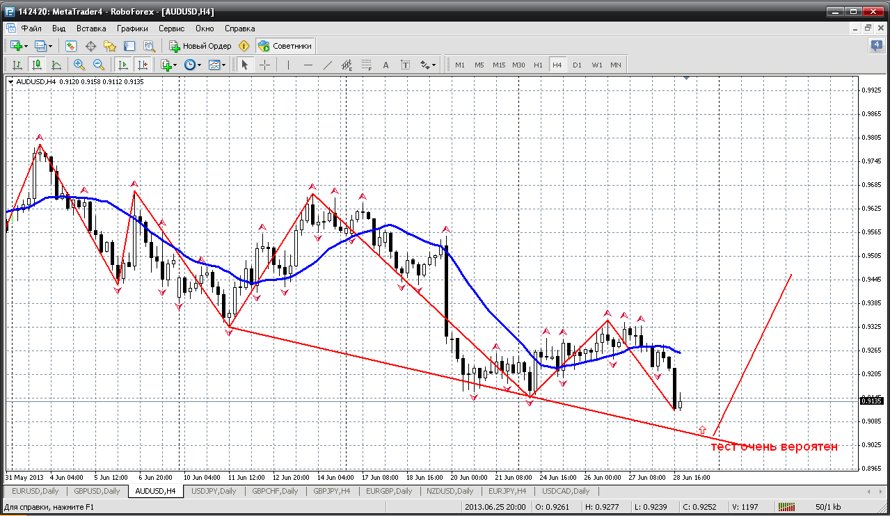 Возвращаюсь к ситуации по паре. Да, перед ростом затяжным (который я жду) вполне вероятен тест трендовой линии на графике Н4, проведенной по низинкам 0.9324 и 0.9146. А это как раз получается на подходе к уровню 0.90. То есть все таки рост очень даже вероятен... |