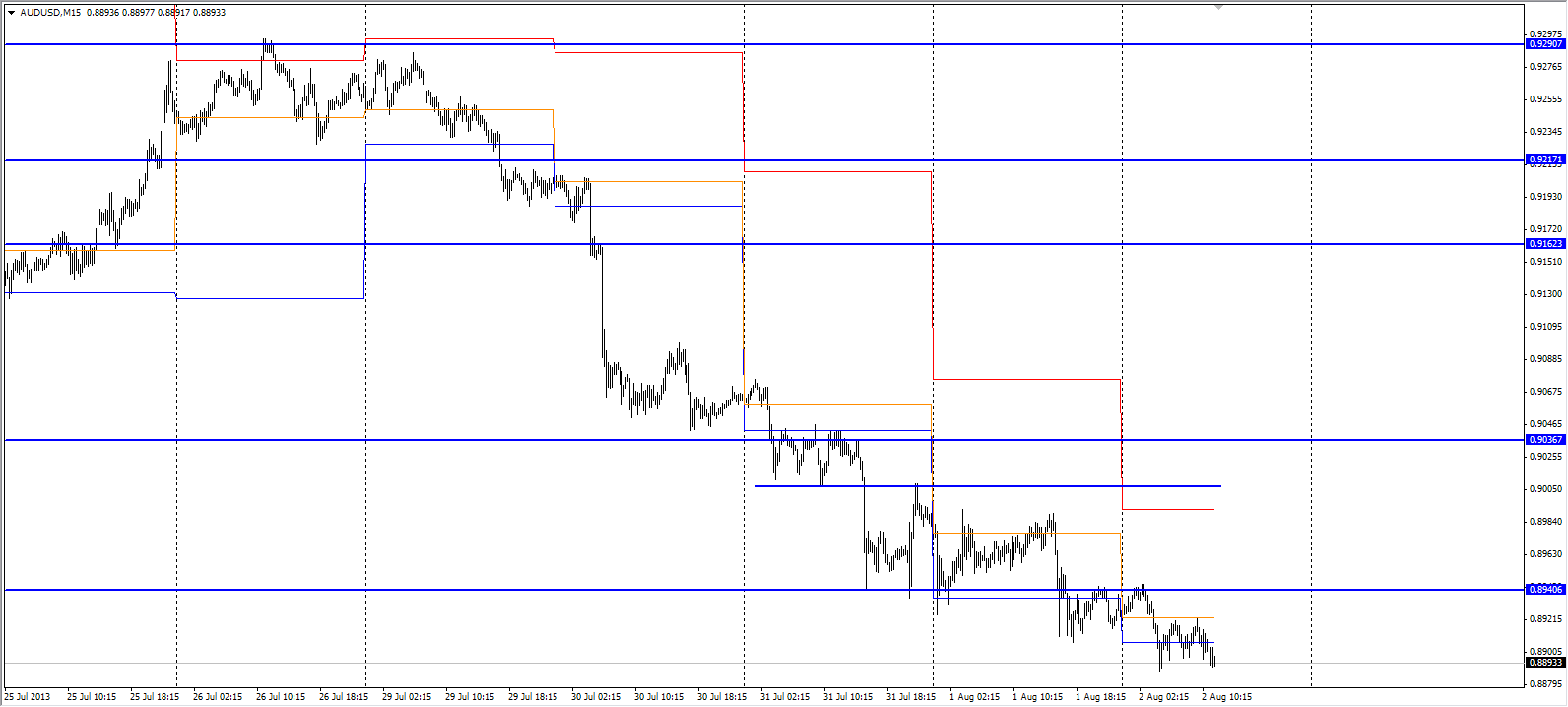 На данном тайфреме по паре AUD\USD торговля ведется ниже скользящих средних линий. основной индикатор дает сигнал на продажу а дополнительный индикатор ниже нулевой линии намерен продавать при пробитии линии 0.8900 до линии поддержки 0.8868 стоп лосс установить у линии сопротивления 0.8912.