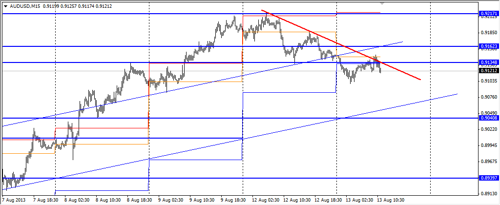 Пара торгуется с понижением .После пробоя поддержки на уровне 0,9135-40 на сегодня в плане продажи при торговле под уровнем и при пробое уровня и торговле над пробитым уровнем поддержки сопротивления буду рассматривать сигналы на покупку по инструменту . |