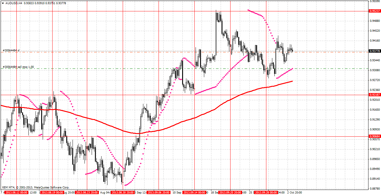 Пара зафлетила на уровне 0,9385, используя ЕМА8-20 и 50 в качестве поддержки и снижение только после пробоя этих скользящих. И это может произойти на выходе статистики по США, хотя кризис власти все еще разгорается в Вашингтоне. Пара двигается в нисходящем канале и до пробоя уровня 0,9440 говорить о росте пока не стоит. Оставляю продажи в работе. ![]() | ||||